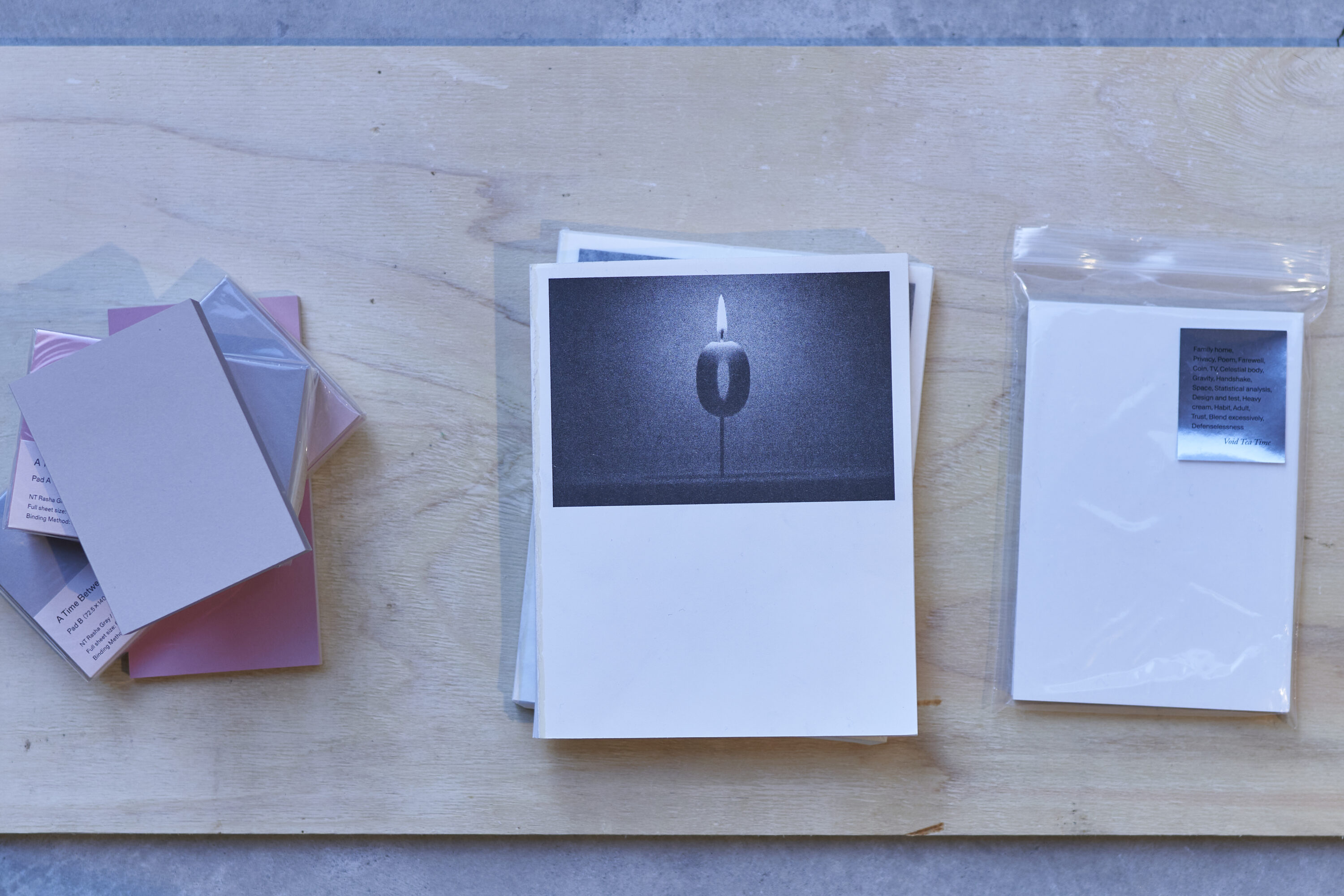 Meian はNeutral Colors のサブレーベルであり、グラフィックデザイナー加納大輔によって開始された出版プロジェクト。グラフィックデザインを通じてパラフレーズ、ロジスティクス、オブリーク、ローカライズの探求を目的にしている。主にリソグラフを中心に、Neutral Colors が所有する機材を用いて、小部数の出版物を世界中に流布することを試みる。本書はMeian の設立趣意書であり、出版プロジェクトの誕生を祝うために刊行された。「明暗」は光から影の陰影を意味する言葉であり、ろうそくの写真はインクのグレースケールによって描写されている。組み合わせによってバリエーションを生み出す可動活字のモジュールを採用しつつも、それぞれの数字が抱えもつ燃え尽きるまでの「オルタネート」は、複数の時間を編集可能な「本」という性質のひとつを表現している。