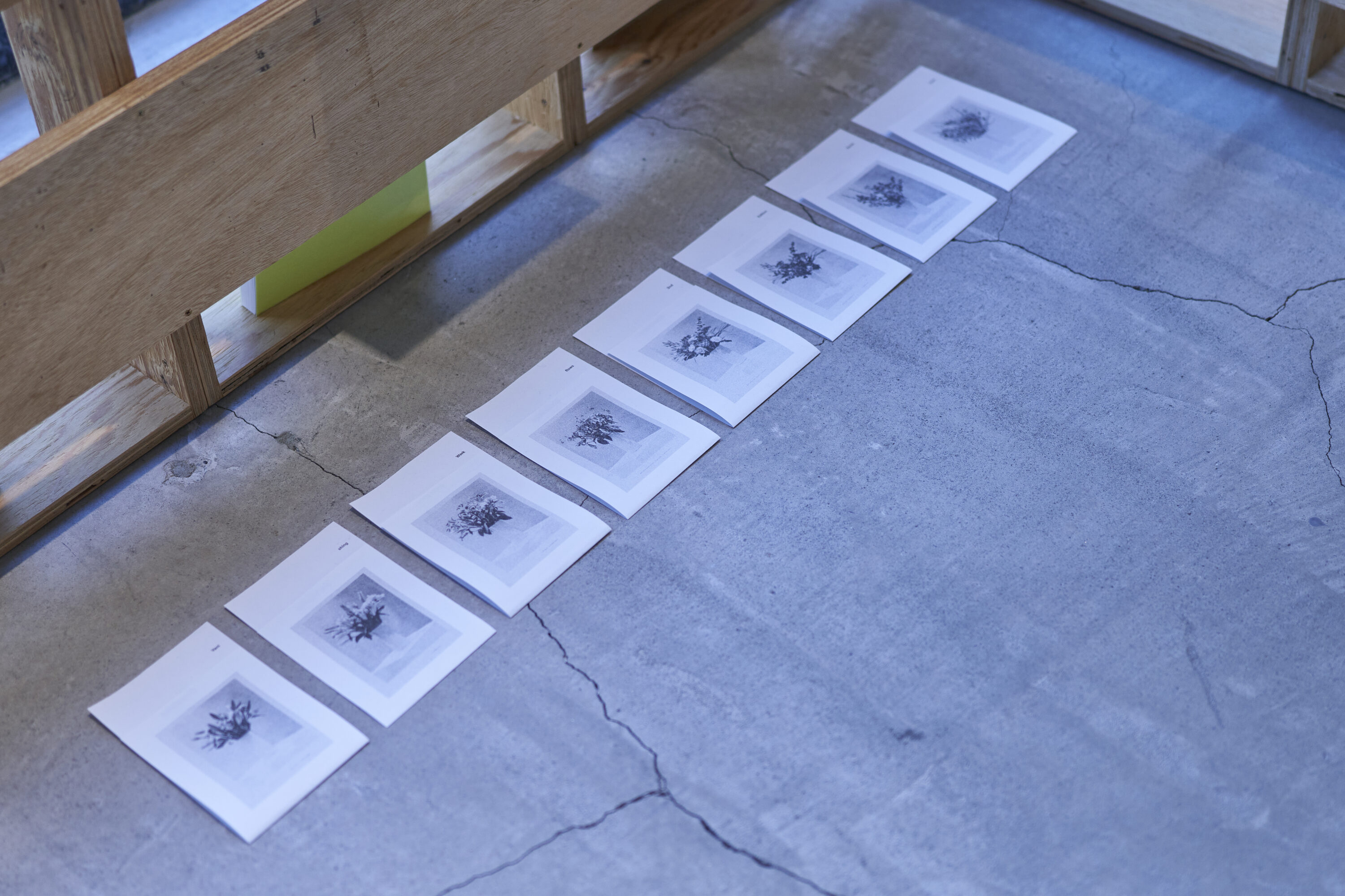 あわせて、本展のために新たに制作した刊行物『Egg Chain Drips』も会場にて販売します。本書は、これまでの仕事のうちのいくつかをまとめた記録集でありながら、展覧会と連動した特殊な仕様となっています。