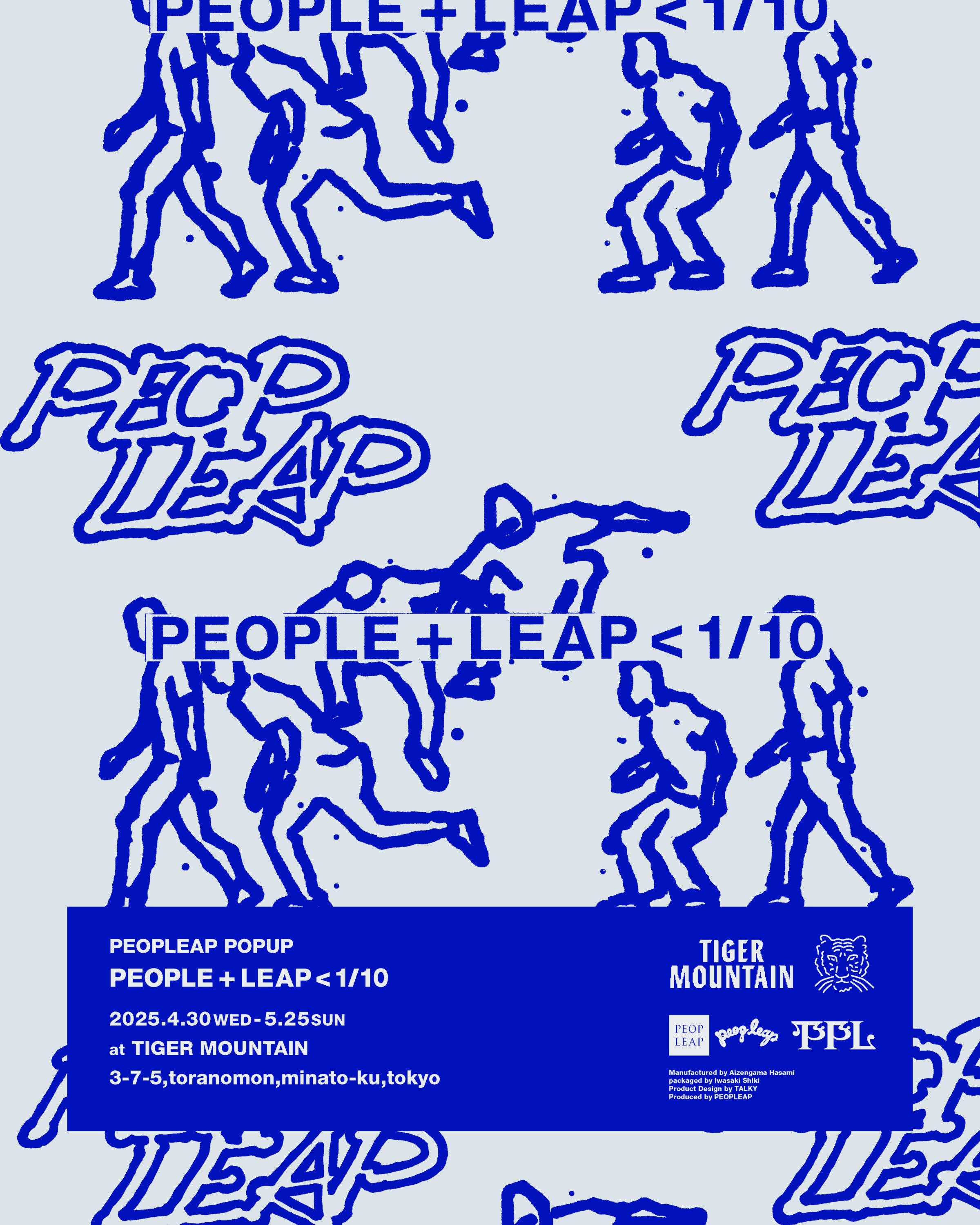 TIGER MOUNTAINギャラリーは、4月30日(水)より、企画展第3弾として、オリジナル・プロダクトを中心に展開するマルチメディア・プロジェクト「PEOPLEAP(ピープリープ)」によるポップアップ「PEOPLE+LEAP < 1/10」を開催します。